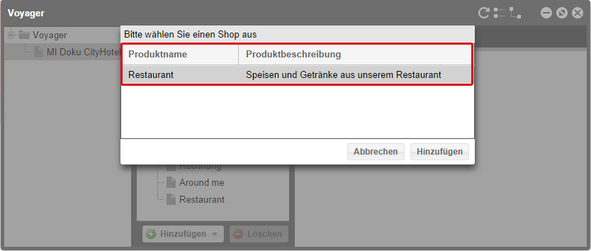 protel Cloud Center > Voyager > Inhalte > Hinzufügen > Shop