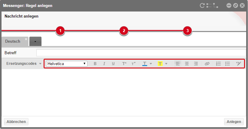 Gut zu wissen Der neue Editor vereinfacht das Anlegen und Bearbeiten von Nachrichten, hat aber keinerlei Auswirkungen auf Ihre bestehenden Versandregeln. Diese werden dadurch optisch nicht beeinflusst und wie gewohnt verschickt. |