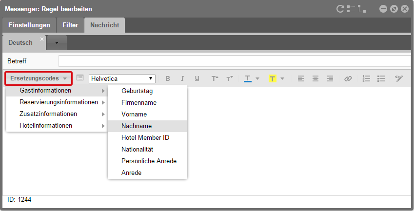 protel Cloud Center > Messenger > Versandregeln > Nachricht > Ersetzungscodes
