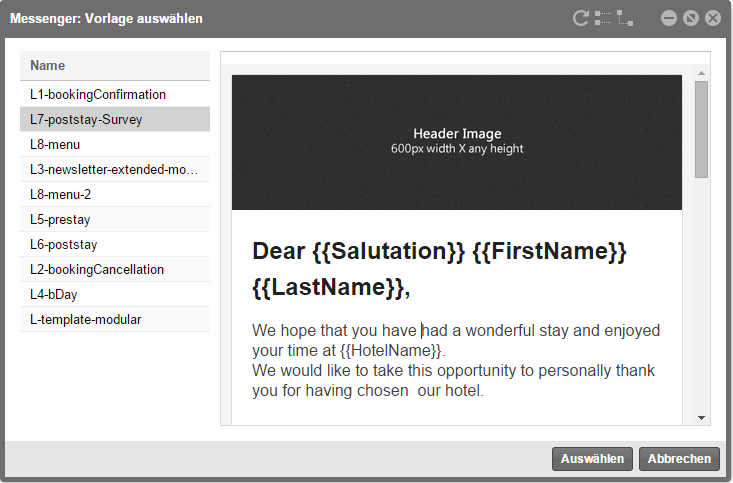 protel Cloud Center > Messenger > Versandregeln > Nachricht > Vorlagen