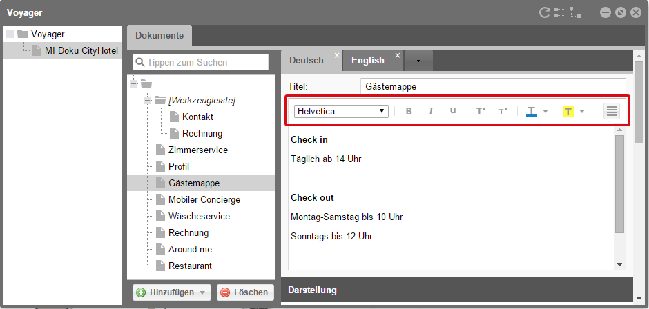 protel Cloud Center > Voyager > Inhalte > HTML-Inhalt