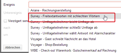 Dort ist das Ereignis "Survey - Freitextantworten mit schlechten