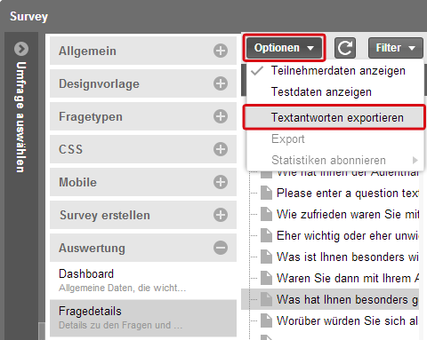 Zusätzlich gibt es eine neue Exportfunktion für Freitextantworten.