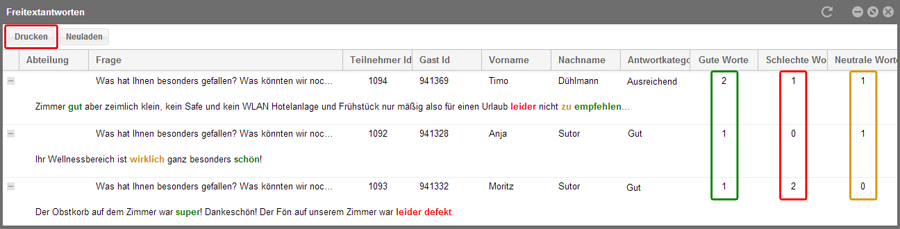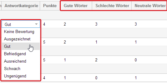 Eine Liste an guten und schlechten Wörtern hilft Ihnen, Freitextantworten