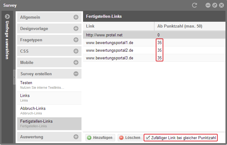 protel Survey leitet die Gäste dann per Zufall abwechselnd an die