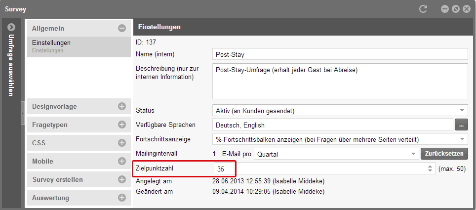 Es gibt nun eine vorab definierbare Zielpunktzahl. Legen Sie fest,