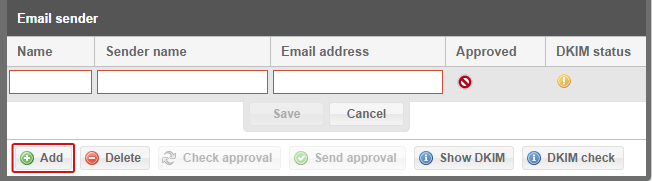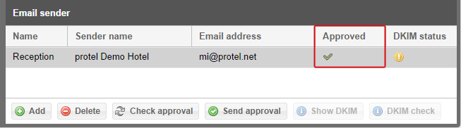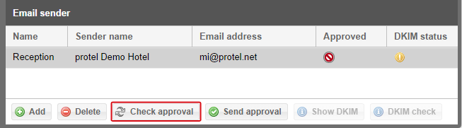 For emails, you must manually create a sender address. Click the [Add] button and enter the sender into the new line from whom the emails are to be sent to your guest.