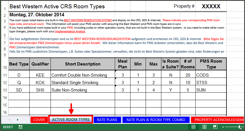 Welche Kategorien im Best Western CRS aktiv eingesetzt werden, entnehmen Sie dem finalen Pre-Implementation Package: