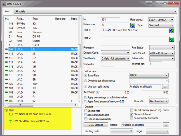 base rate code will be allocated to BWI's BAR rate. BWI's